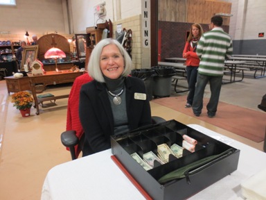 Edna Forsyth (L) and Kris Yusko (R) sell 50/50 raffle tickets and the new Club Support Card -- Fall 2014