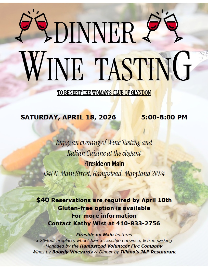 Regular meetings are held from September through May on the first Wednesday of the month. Luncheon, General Meeting and Program at 11:30am. These meetings are held at the Woman's Club of Glyndon's Clubhouse, 4627 Butler Road, P.O. Box 22, Glyndon, MD 21071,
