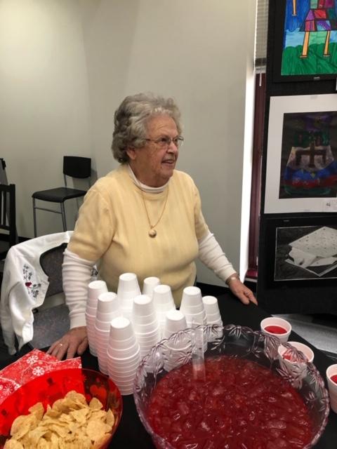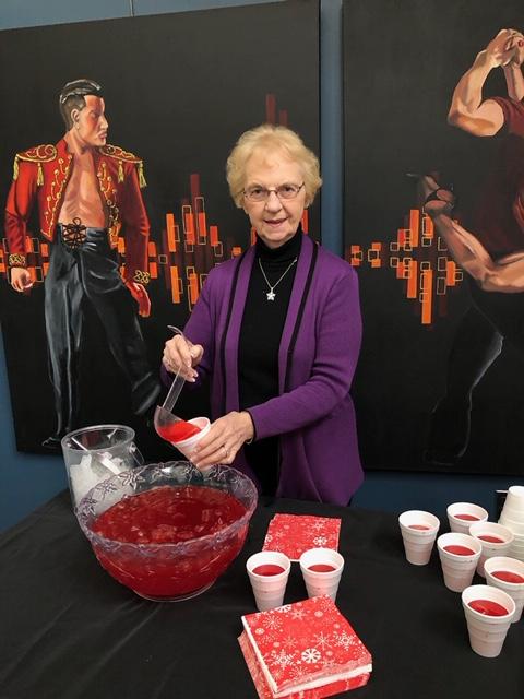 GFWC MD President Dottie Gregg serving punch at our Winter Art Exhibit