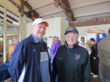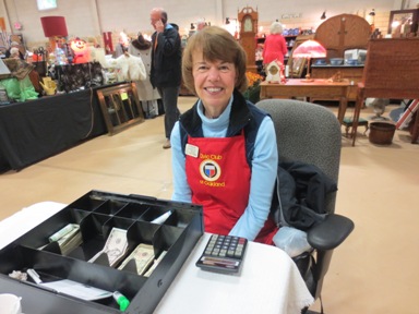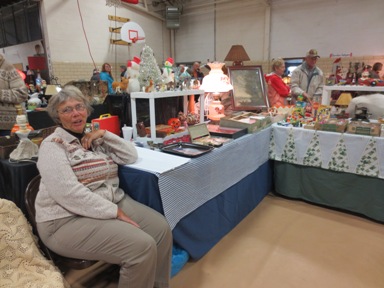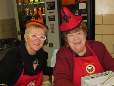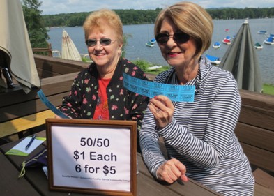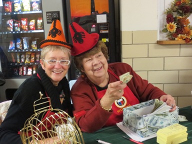 Edna Forsyth (L) and Kris Yusko (R) sell 50/50 raffle tickets and the new Club Support Card -- Fall 2014
