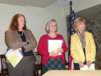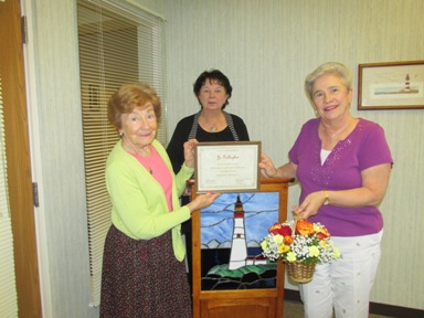 Jo Gallagher, Membership Chair, receives recognition from Garrett County Lighthouse; Betty Ellington - GCLH BD President, Donna Gregory - GCLH Ex. Dir., Jo Gallagher